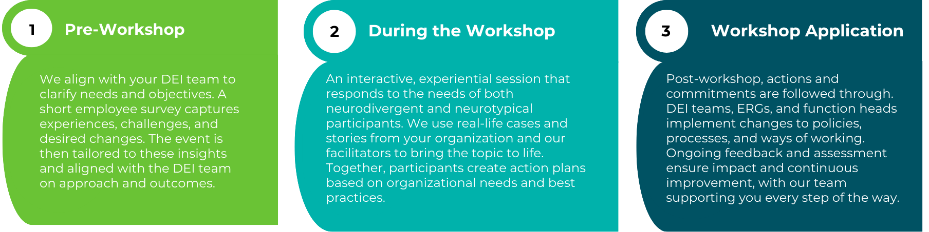 In addition to awareness and experiential workshops, we provide ongoing consultancy to help build inclusive workplaces where neurodivergent employees can thrive. We start with an analysis of your objectives and specific challenges, then work with HR, leadership teams, and ERGs to adapt systems, policies, and practices across the employee journey.